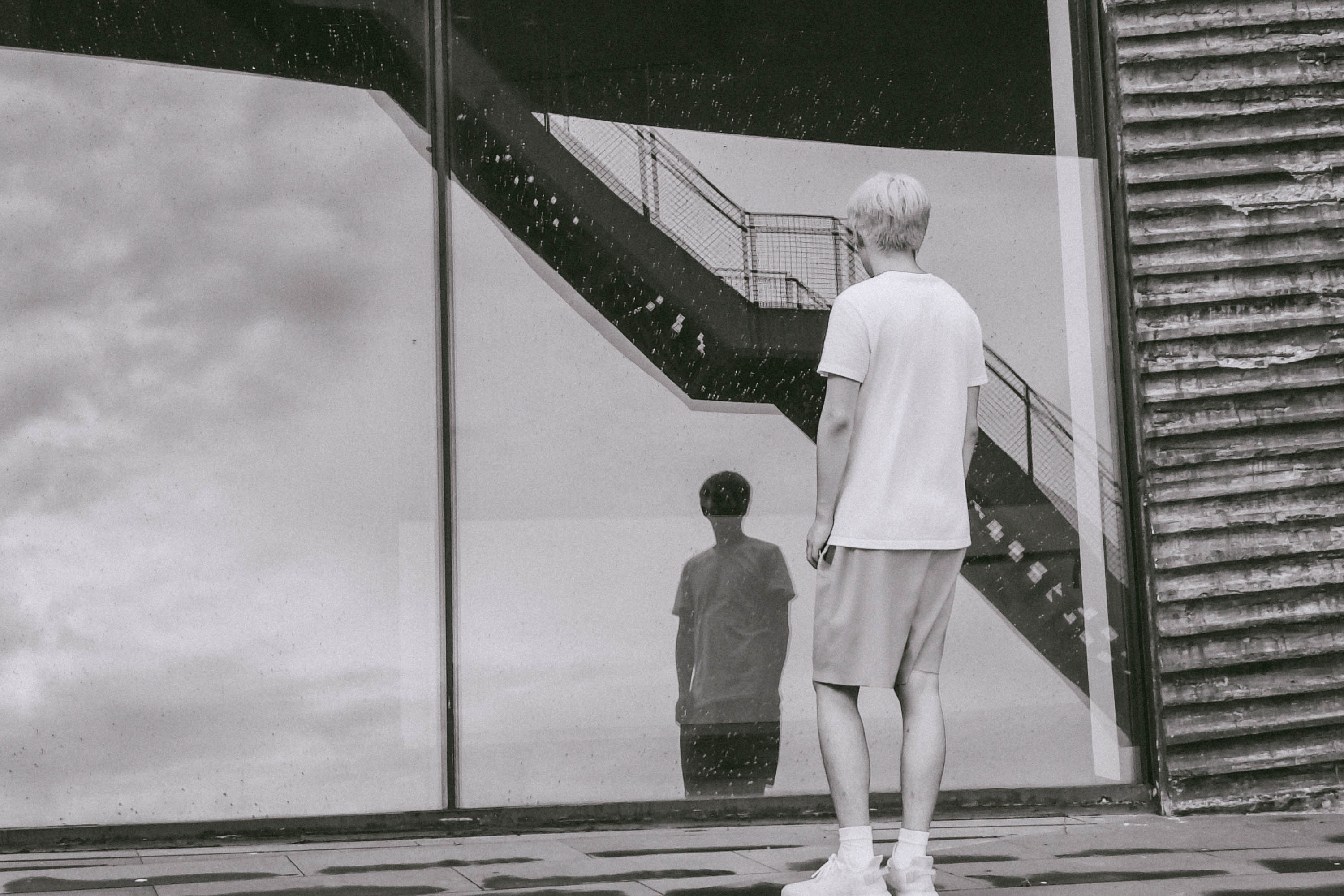 The sun hits the glass and steel. I raise my camera, no rush.